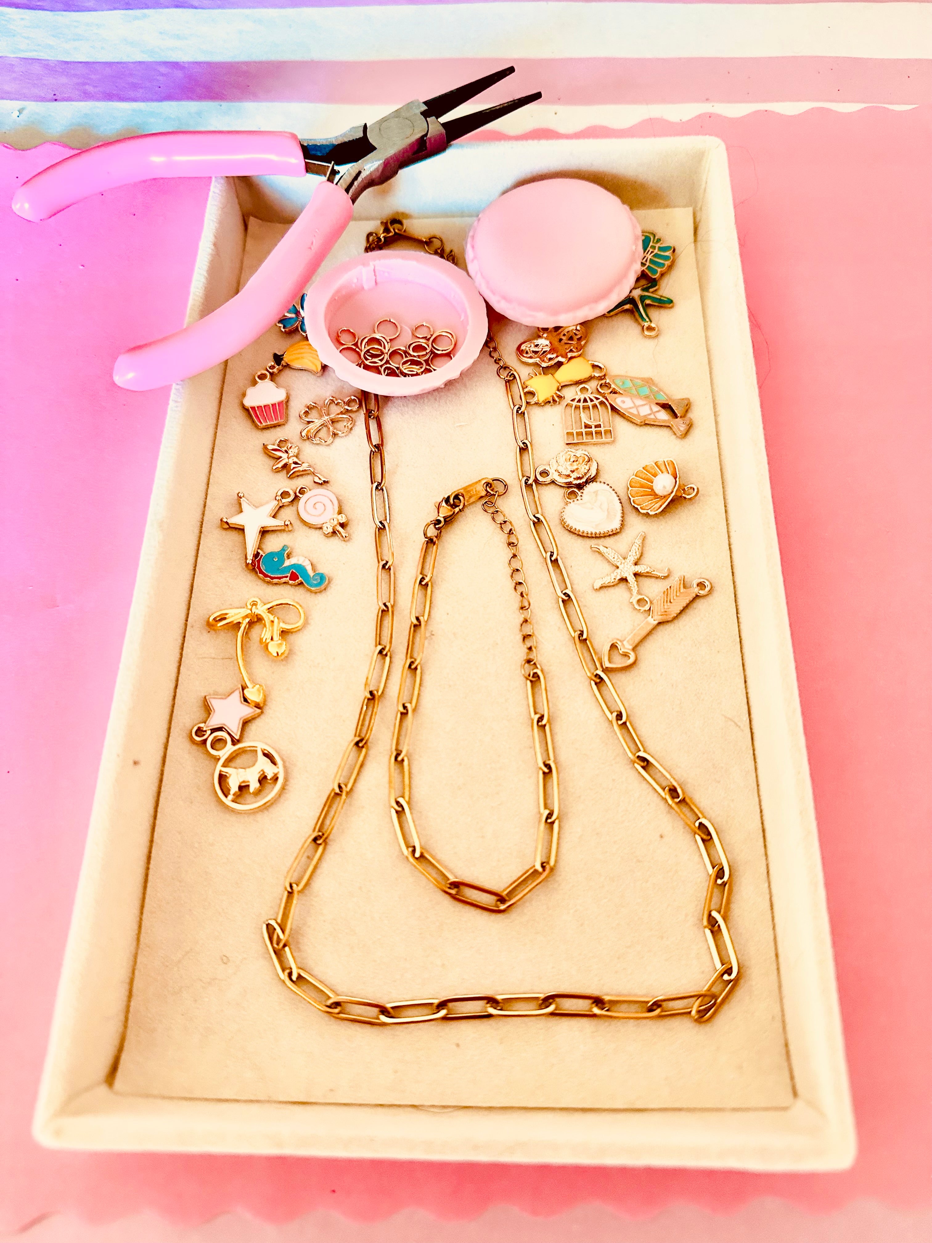 Design a necklace or bracelet using curated charms and chains - each guest creates a keepsake to wear home.